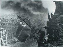 Esta fotografia do triunfo dos aliados na Segunda Grande Guerra Mundial,