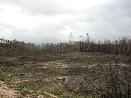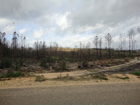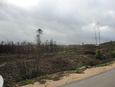 Até veio a calhar o incêndio de um pinhal com a envergadura daquele que as imagens mostram, podendo-se constatar, atentando na última imagem, uma pequena mancha verde que é a reflorestação contudo não de pinheiros, mas sim de eucaliptos.
