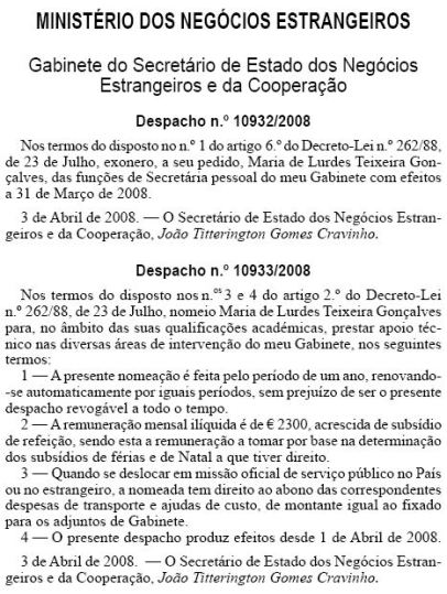 No mesmo dia é exonerada, a seu pedido, e nomeada para um cargo (ou o mesmo?), mais bem remunerado….